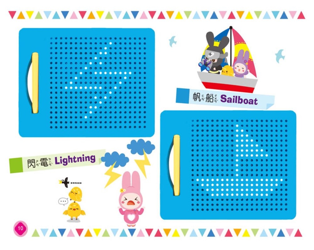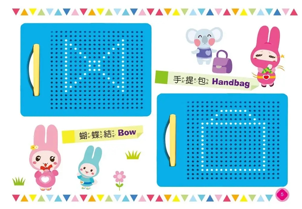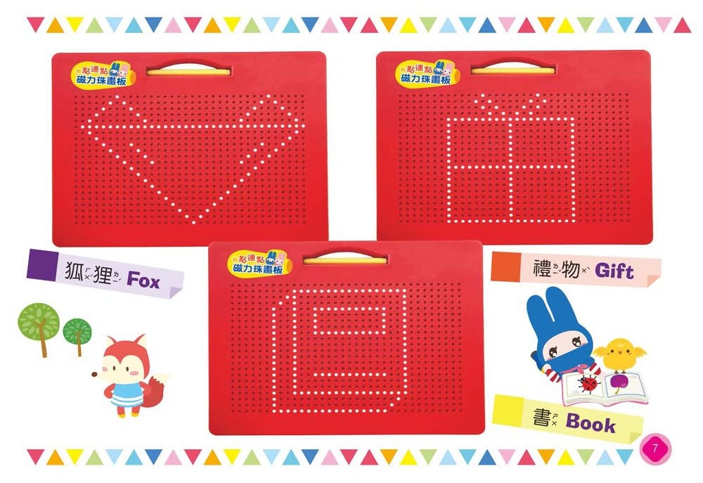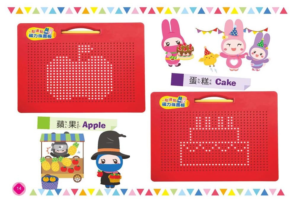 親子手冊附上40款造型,搭配可重複使用的磁力珠畫板,激發孩子的想像力及創造力,快來試試還可以排出哪些造型吧!