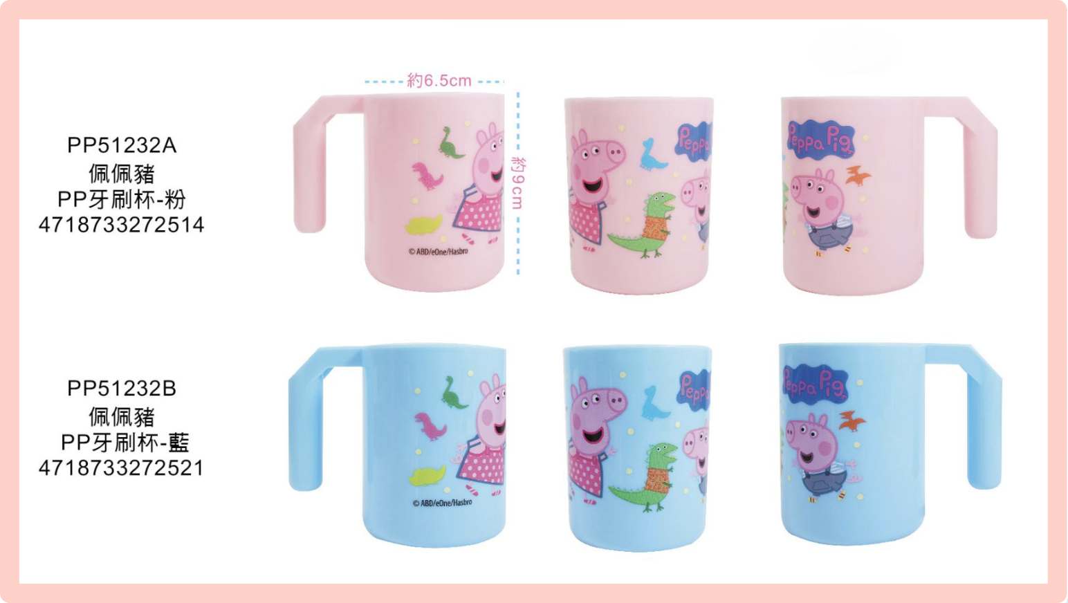 ⭐敦景企業⭐ 台灣製 正版授權 佩佩豬 粉紅豬小妹 PP牙刷杯 漱口杯 塑膠杯 提把杯 兒童杯子 小杯子 學習杯