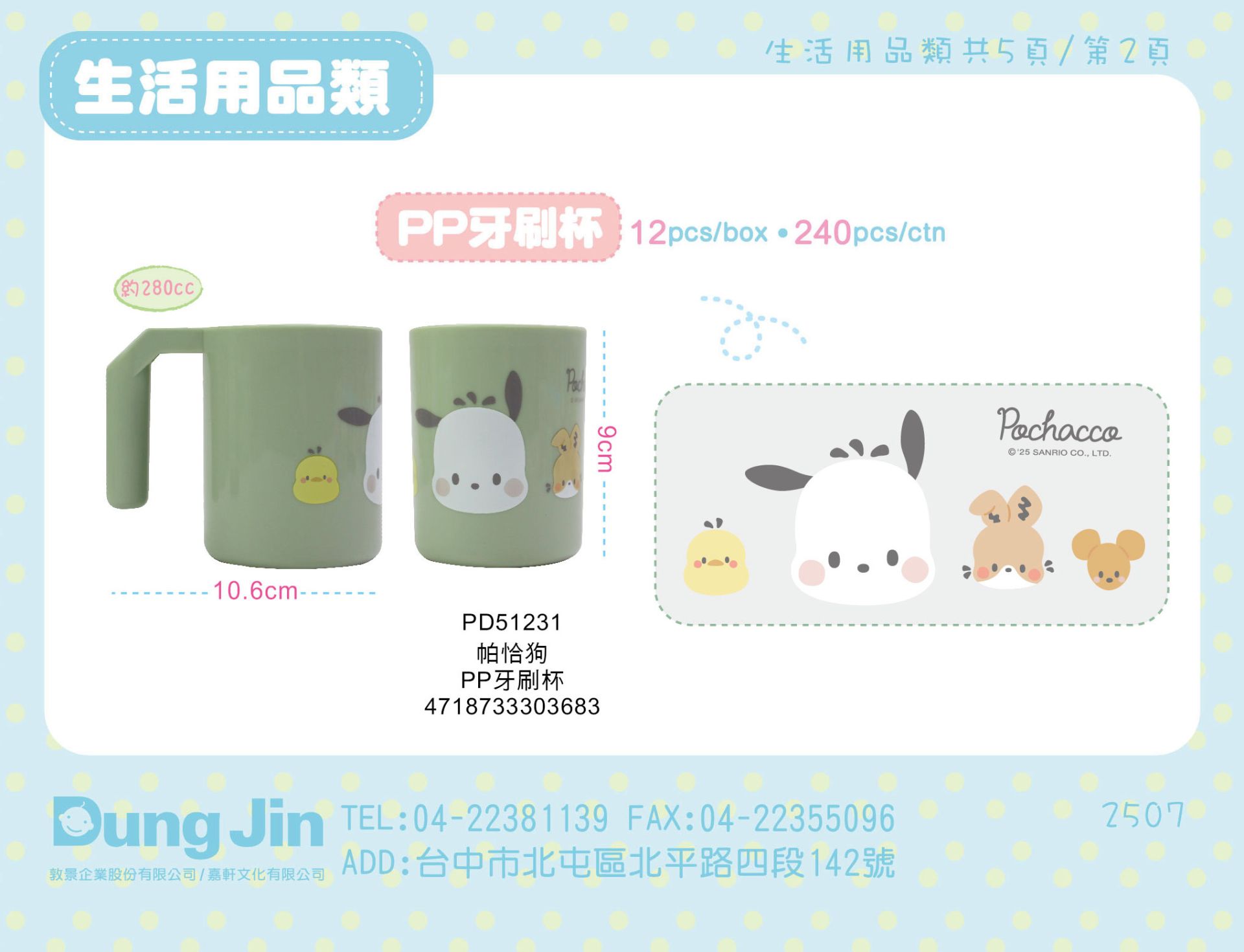 ⭐敦景企業⭐ 台灣製 正版授權 三麗鷗 帕洽狗 PP牙刷杯 漱口杯 塑膠杯 提把杯 兒童杯 小杯子 學習杯