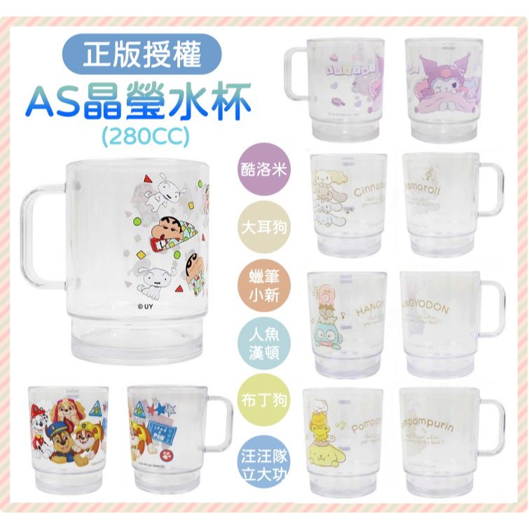 ⭐敦景企業⭐正版授權 臺灣製 AS晶瑩水杯 塑膠水杯 兒童杯 蠟筆小新 酷洛米 大耳狗 人魚漢頓 布丁狗 汪汪隊立大功