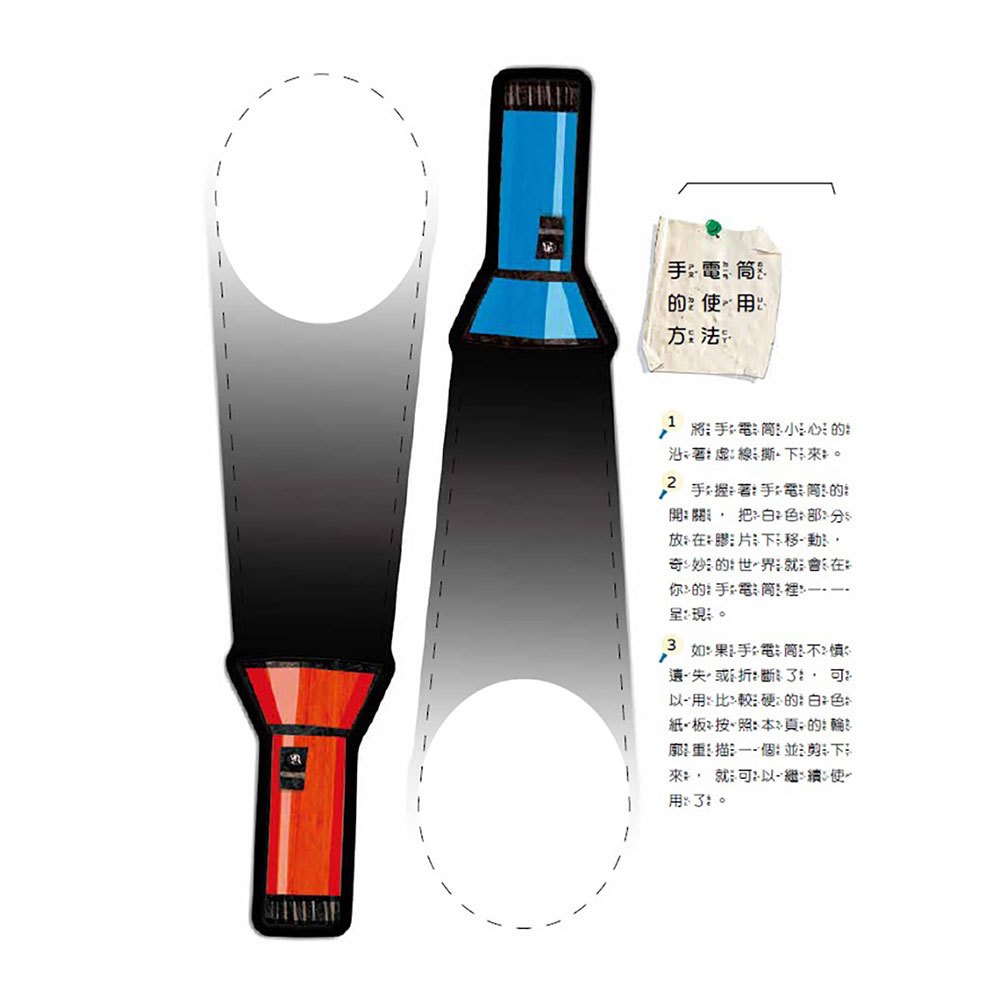 ★利用紙板手電筒與彩色膠片的特性,創造出極具趣味的遊戲。