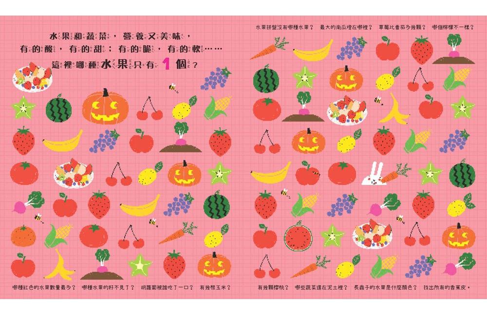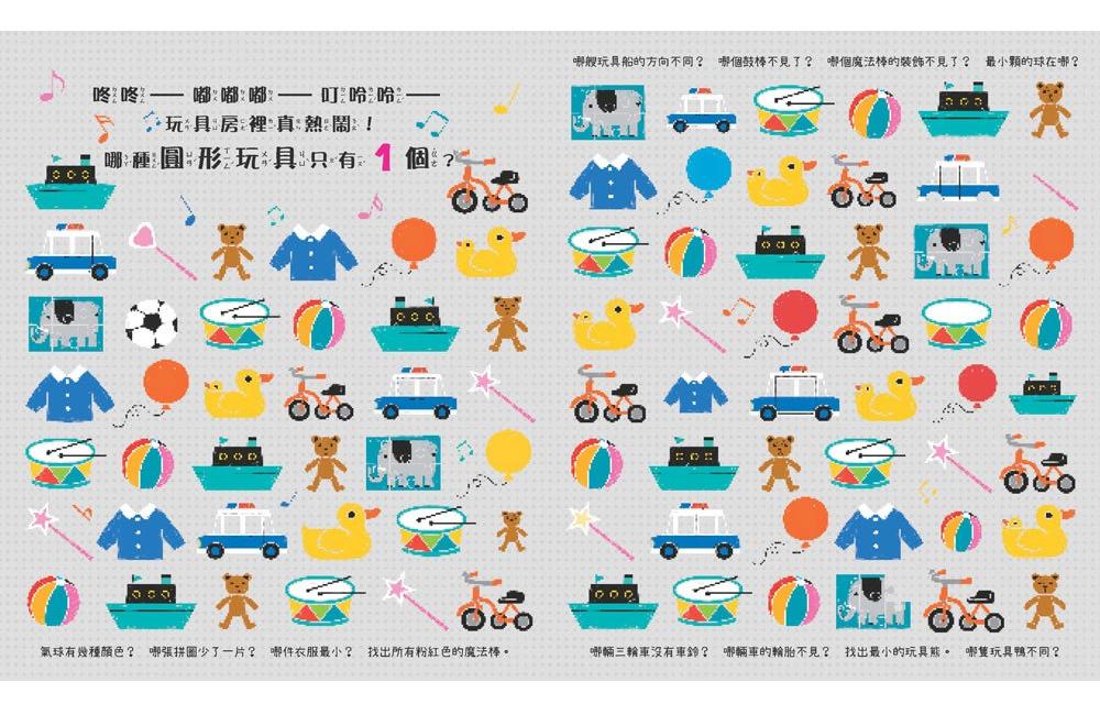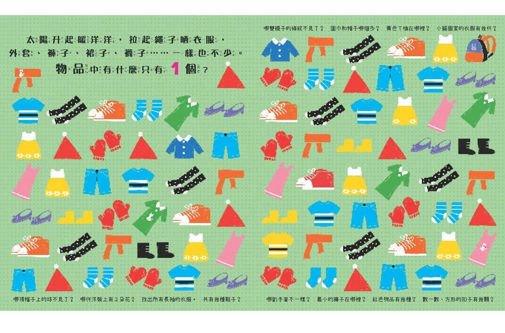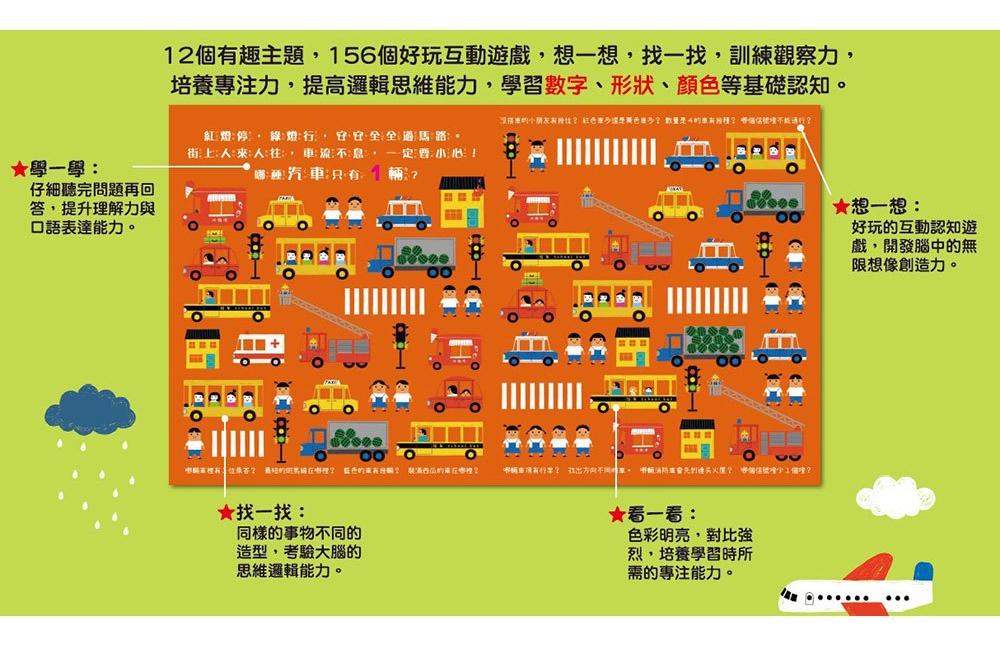本書共12個有趣主題,156個好玩互動遊戲,帶領孩子想一想,找一找,哪種動物或物品「只有一個」?不僅訓練觀察力、培養專注力,更能提高邏輯思維能力,學習數字、形狀、顏色等基礎認知。