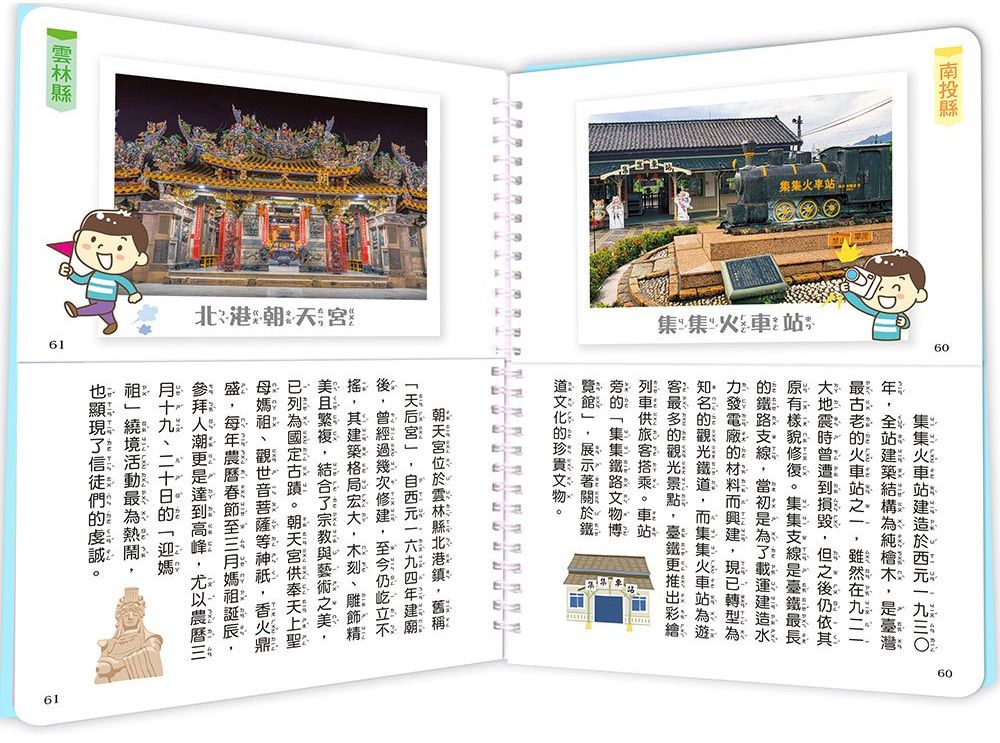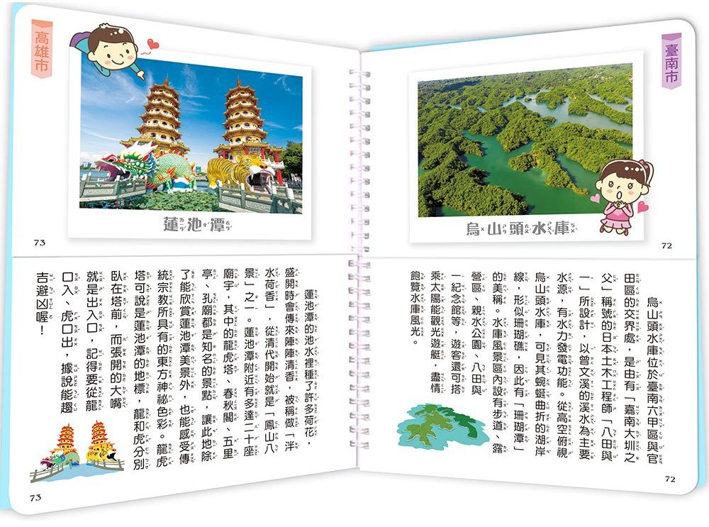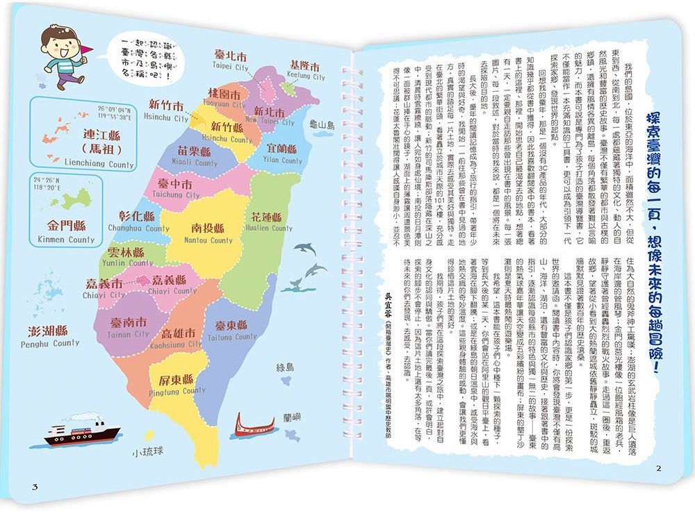 每頁皆有具特色的景點照片,搭配輕鬆的文字解說,帶你一起暢遊美麗的山林與河流、充滿人文情懷的歷史建築,以及豐富人們知識與眼界的各類展覽館……讓你越看越了解這片土地且更愛它,並懂得珍惜我們所擁有的美好環境。