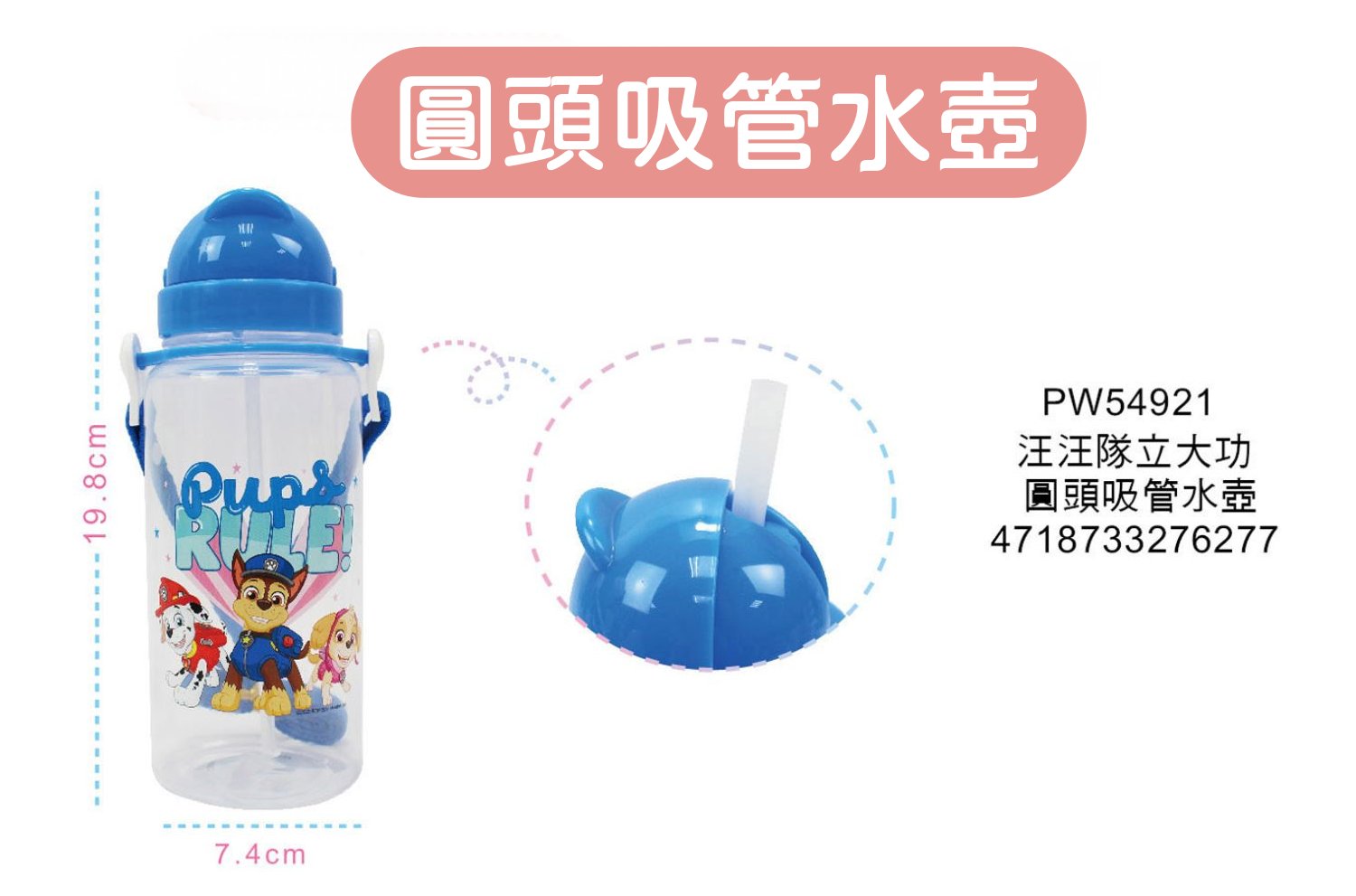 ⭐敦景企業⭐ 圓頭吸管水壺 (500cc) 汪汪隊立大功 兒童水壺 背帶水壺 吸管水壺 塑膠水壺