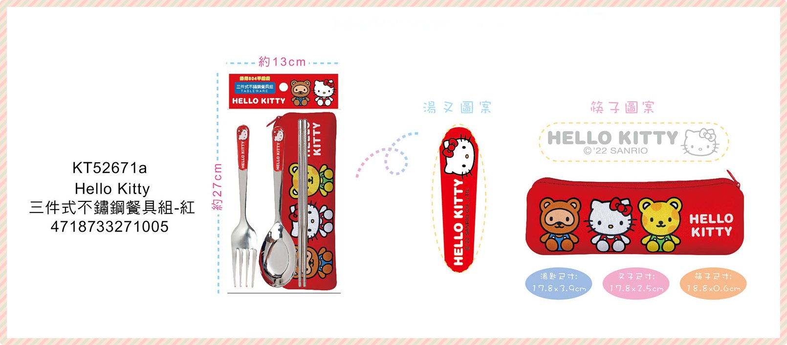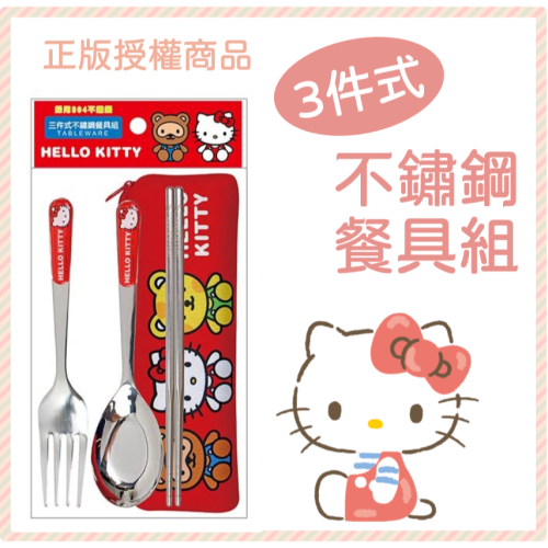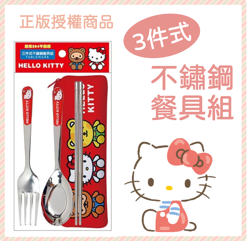 ⭐敦景企業⭐正版授權 Hello Kitty 三件式不鏽鋼餐具組 KT52671A 兒童餐具 餐具袋 餐具套組 生日禮物