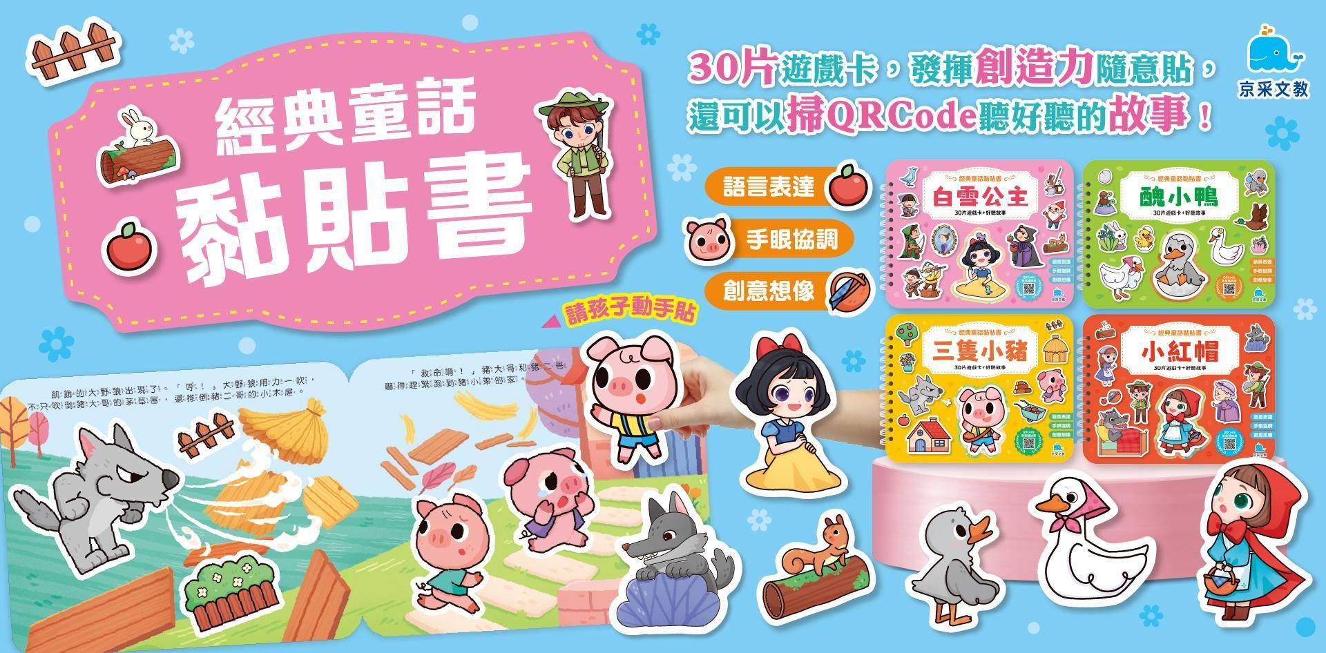 經典童話×黏貼遊戲×故事音檔,一次滿足動手操作、聽覺饗宴與創造力訓練!