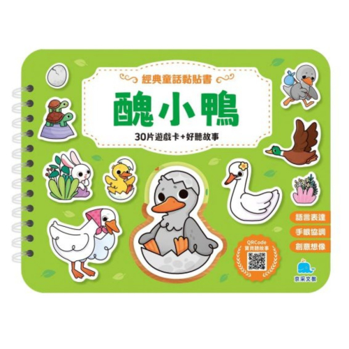 讓孩子透過好玩的黏貼遊戲,進入醜小鴨的童話世界——本書內附30張可重複黏貼的圖卡,結合豐富繽紛的場景,讓孩子在聆聽故事及撕撕貼貼的過程中,練習觀察力、手眼協調與故事推理能力。