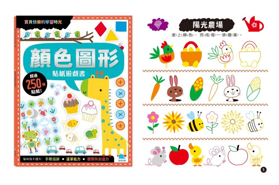 全書包含多種勞作、卡牌遊戲及超過1500張貼紙,可以與書中的活動搭配使用,也可以單獨玩耍,一邊學習的同時也帶來滿滿的快樂與成就感