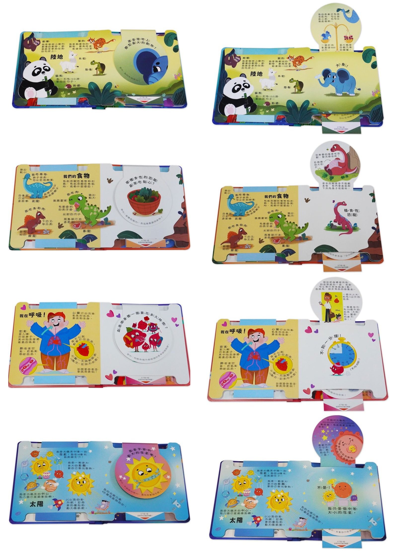 1. 互動式閱讀:每頁設計一組抽拉機關,讓孩子在遊戲中學習更多的知識,提升樂趣。