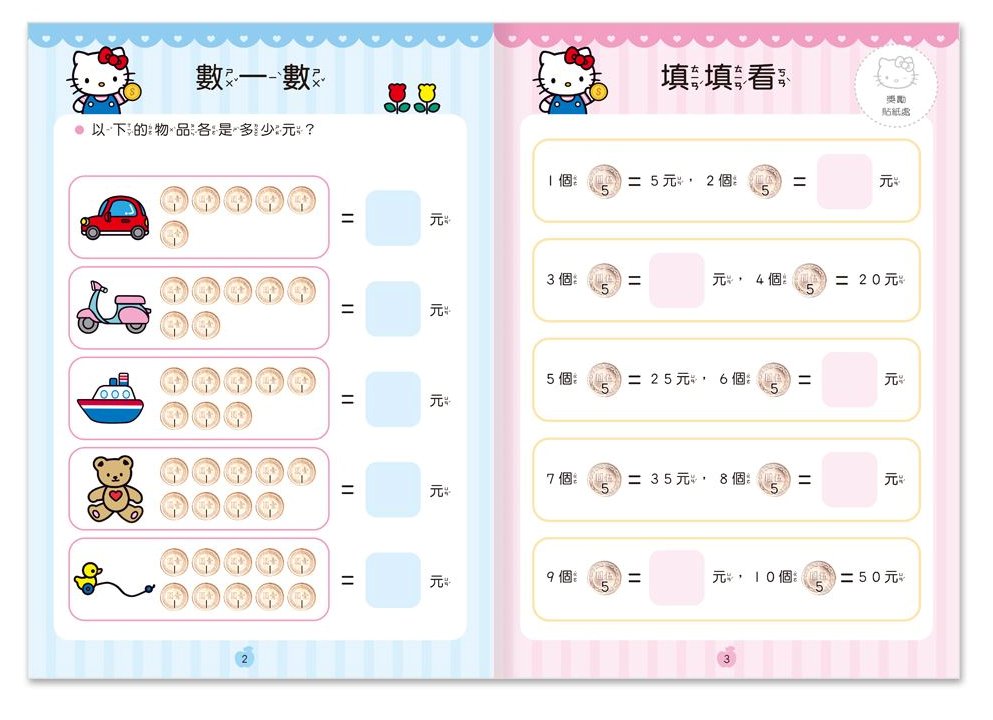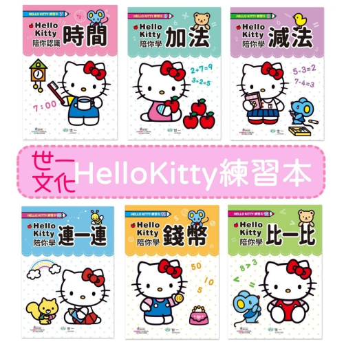 📚世一文化📚HelloKitty 練習本 時間/加法/減法/連一連/錢幣/比一比 數學遊戲 學前練習 生活數學