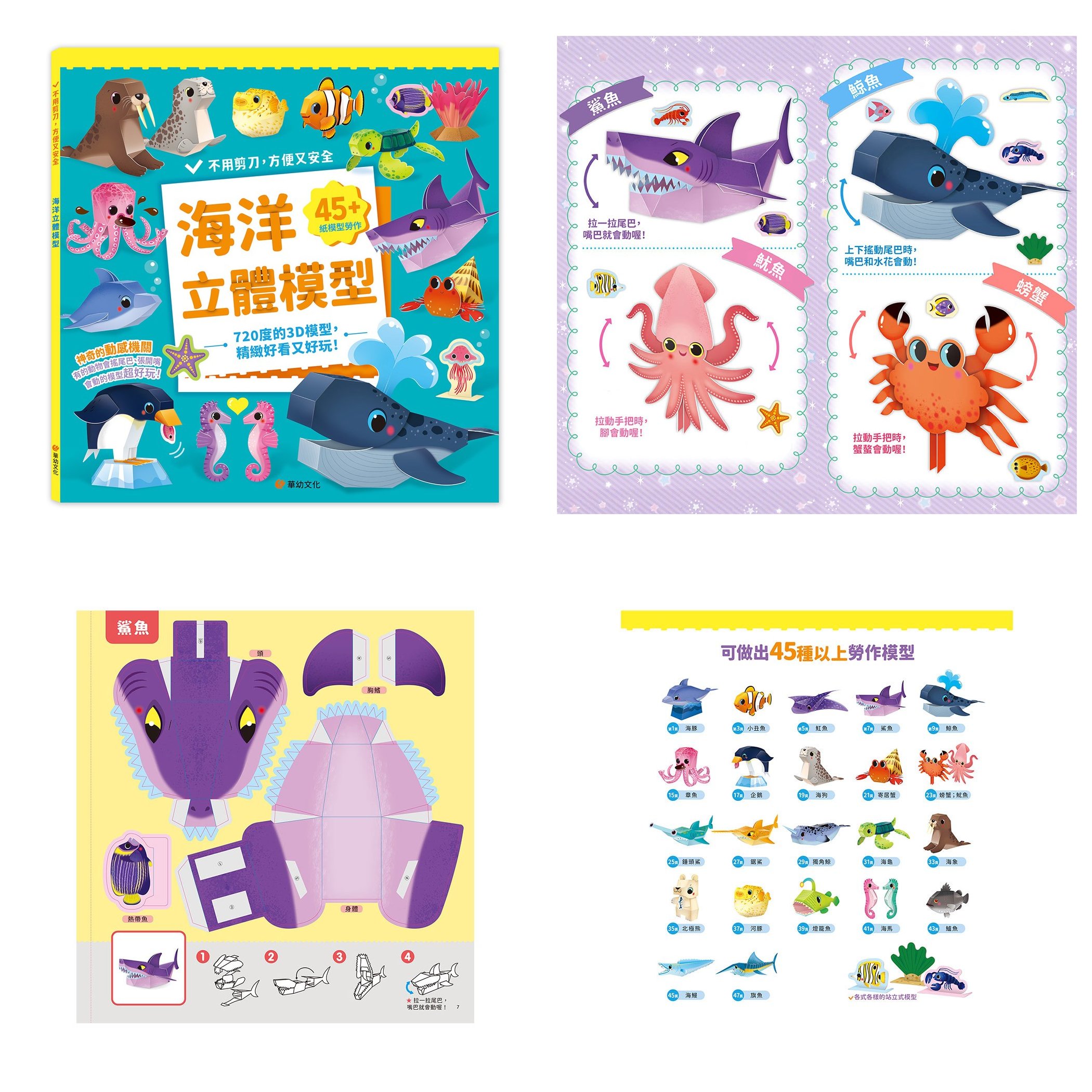 本書突破傳統勞作極限,首創特殊的「活動機關」,讓完成的作品不再只是靜態展示,而是能張開大嘴,或是靈活的動動觸手,孩子在動手做的過程中,不只體驗DIY的樂趣,更能感受到作品「動起來」的驚喜與成就感。