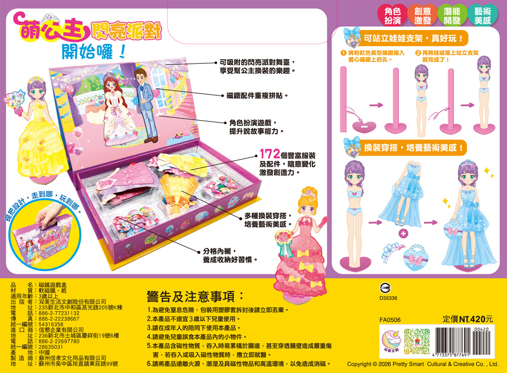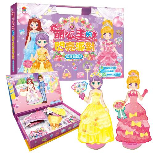 內含: 磁鐵換裝娃娃4個+服裝配件磁鐵172個+閃亮派對舞臺1個