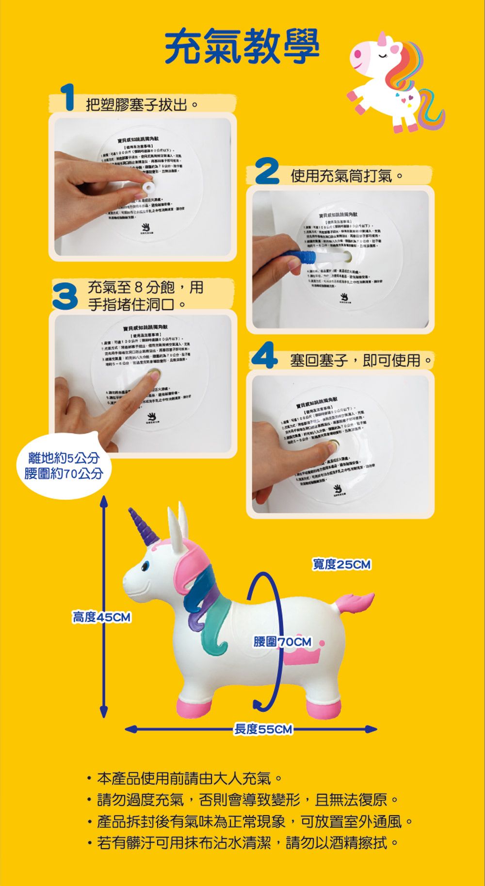 *請由大人充氣,完成尺寸為55×25×45公分。
