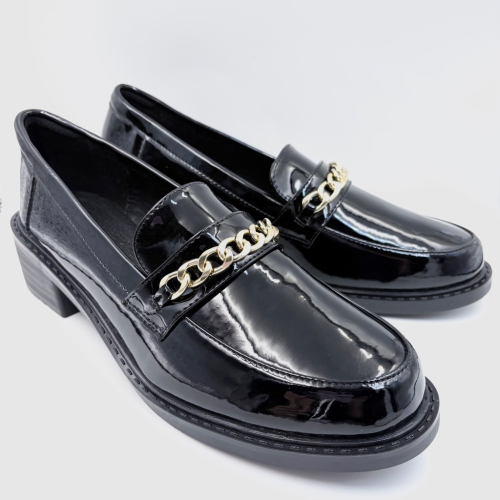 ✔ 黑色漆皮 × 金鏈條