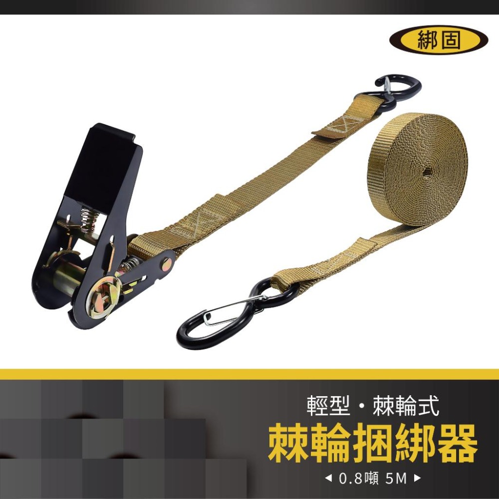 【綁固 Bon Strap】0.8噸5米 捆綁器+S鉤(附檔片) 綑綁器 手拉器 貨車綑綁帶 外箱綑綁帶 布猴 棘輪綁帶