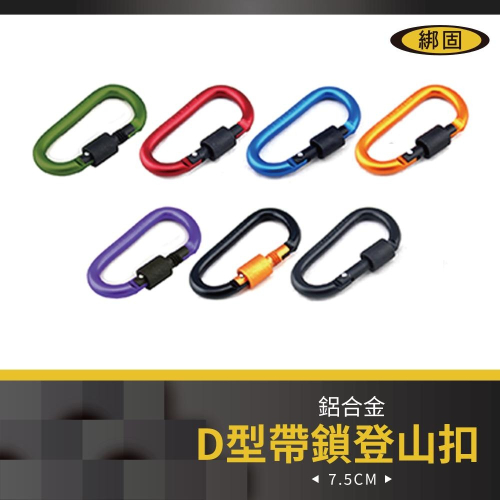 【綁固 Bon Strap】7.5cm D型鋁合金帶鎖登山扣 登山扣 水瓶扣 D型扣 掛扣 露營 吊環 安全扣 帶鎖D扣