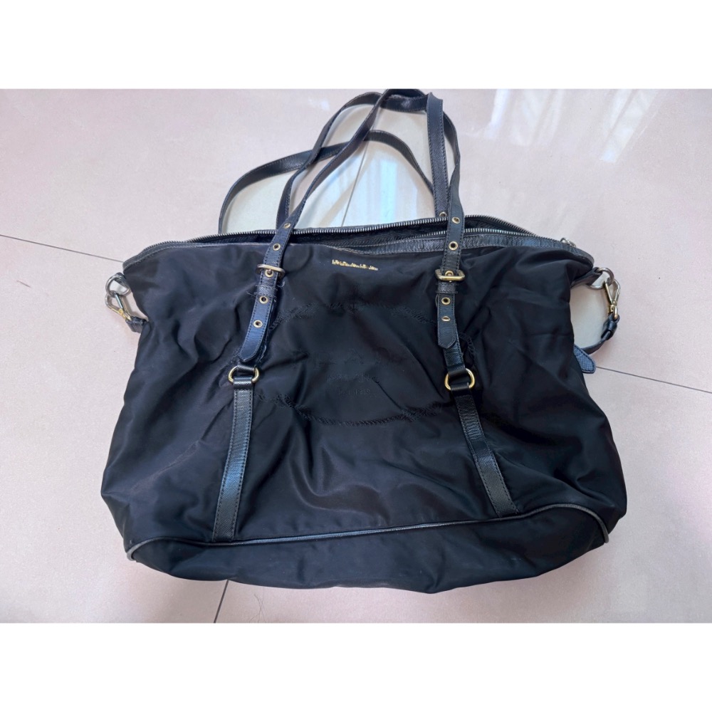 Prada 普拉達黑色尼龍布皮飾邊兩用斜背/托特包,購入於香港