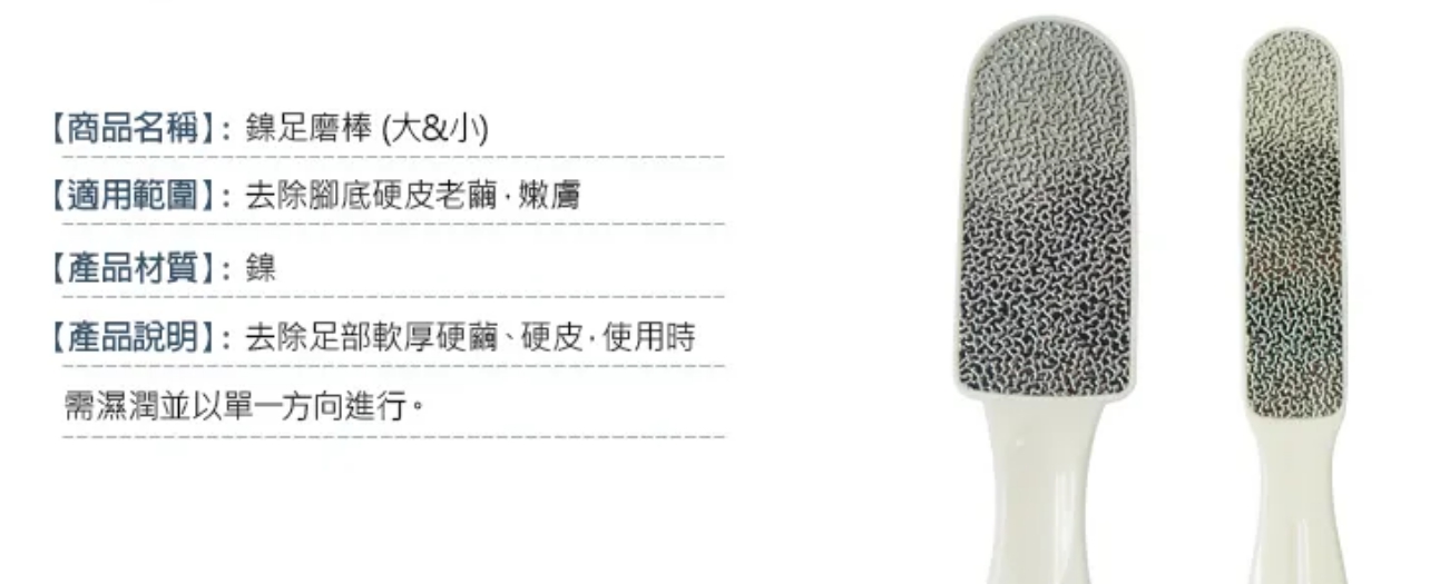 功能:主要用於磨除腳底硬皮死皮。