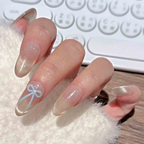 No.003丨微醺藍絲帶 Ribbon Drunk【清透感丨手繪丨貓眼丨裸色系丨ClearGirl】手工穿戴甲