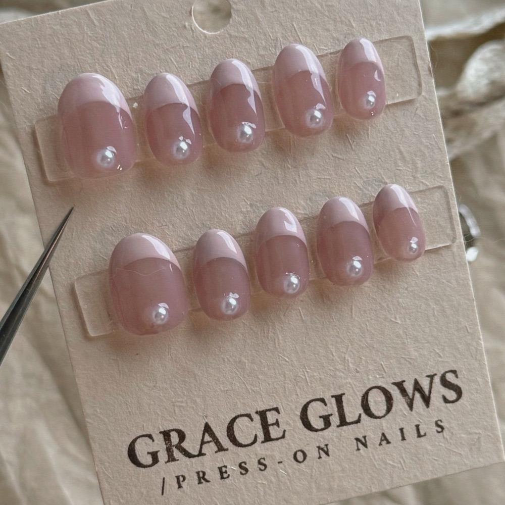 No.008【氣質丨法式丨珍珠丨ClearGirl丨粉色系】手工穿戴甲