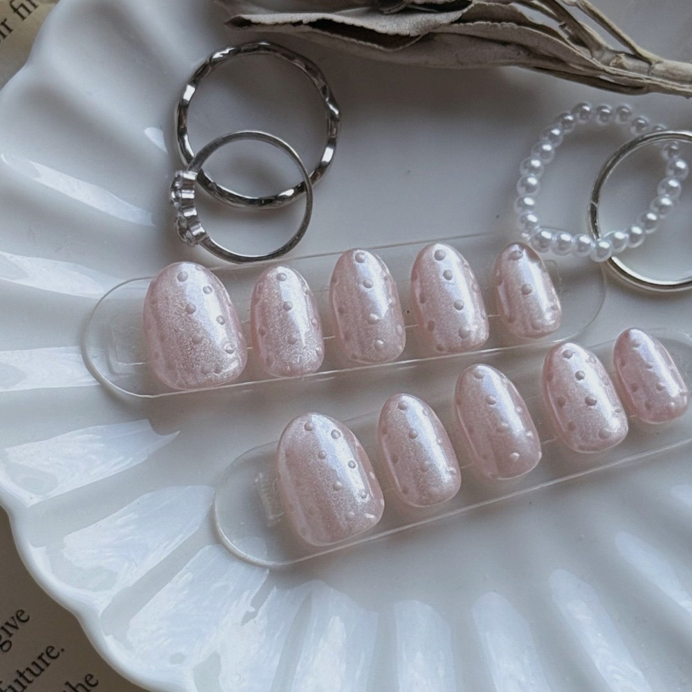 No.019【極光粉丨貓眼丨粉色系丨波點丨氣質丨ClearGirl丨海莉同款】手工穿戴甲