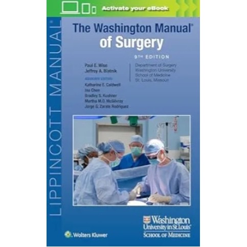 Focusing on must-know information in the broad spectrum of general surgery,The Washington Manual® of Surgery,9th Edition,provides concise, high-yield content essential for surgical residents, attendings, medical students, and others who provide care for patients with surgical disease. Edited by Drs. Paul E. Wise and Jeffrey A. Blatnik, and written by teams of Washington University residents and faculty, this bestselling manual presents state-of-the-art, comprehensive information in a brief, outline format, along with numerous figures, tables, algorithms, and images throughout. In one convenient, portable resource, you’ll find practical coverage of all surgical subspecialties (thoracic, GI, colorectal, cardiac, vascular, breast, trauma, critical care, and more)—all at your fingertips for quick review and reference.
