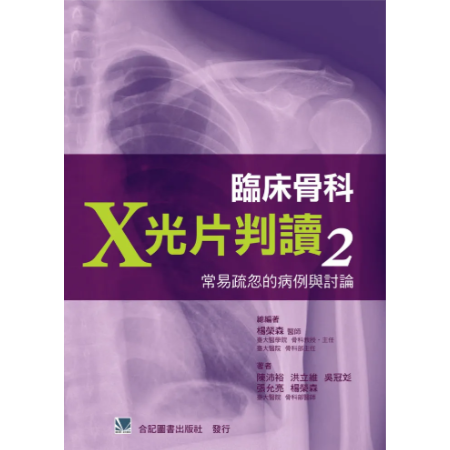 自從《臨床骨科X光片判讀》一書出版以來,各界佳評如潮,該書乃選輯近百例骨科病患,提供骨科新進醫師有關判讀X光的要點,尤其是在急診及門診的日常作業中,給予許多經驗與建議,針對常易疏忽的病例,提供教案讓初學者學習如何避開各部位可能的診斷陷阱,達成正確的診斷與治療。尤其針對有經驗的醫師可以從X光片看出異常部分,更特別用箭頭表示出來,提供初學者參考。從各案例的學習過程中也可增加經驗,充實判讀知識,例如未移位的細微骨折、缺少特殊拍攝角度X光片、特定部位如足部、胸骨或骨盆等,都可學到一些特殊的經驗,但本書因受限於篇幅,無法一一羅列,也不是本書的範疇,讀者可從更完整的X光影像教科書學習。