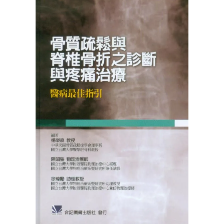 此外,本書內容更普及骨質疏鬆症及脊椎骨折的診療情況,也適用於實習醫師、住院醫師、骨科、復健科、影醫科、家醫科及第一線服務的醫師,也適用於物理治療師、職能治療師、護理人員及學生等。當然這是一條艱辛漫長之路,必須堅持到底,才可成功。本書得以出版,首先要感謝各位共同作者百忙之中抽空完成,感謝父母、師長的栽培與家人的支持,在此更感謝合記圖書出版社吳先生的邀請與編輯部的支援,使本書得以付梓。限於篇幅與知識,相信本書尚有未克詳盡的許多層面。雖經多次校閱,以力求完善,但錯誤之處在所難免,祈望各位讀者及先進不吝指正,幸甚。