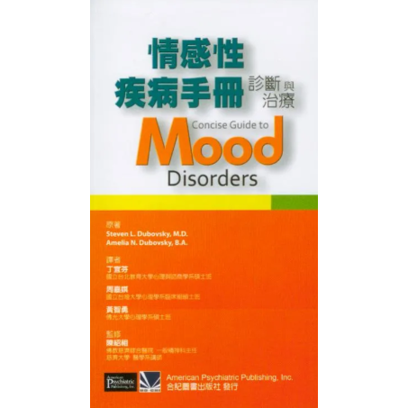 身為第一線心理衛生工作者,忙於診間病患和教學研究,無法親自撰寫衛生教育文章與編撰教材,而要求實習的醫學生、心理系、社工系同學研讀原文資料,心中常存愧疚。感謝丁宜芬、周嘉琪、黃智勇同學願意花時間將這本簡短,但全面性的專業小書翻譯成中文,讓大家有機會在較短的時間內吸收完整知識。去除語言藩籬後,可以有多一些時間去思考人生意義,並與親愛的人相處,這三位譯者實在是功德無量。希望讀者能夠藉由本書更認識情感性疾患和正確有效的治療方式,不但助人也幫助自己,擁有健康快樂的生活。