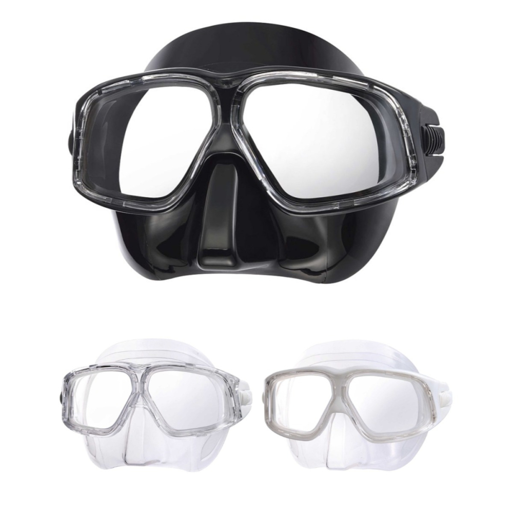 •弧形面鏡的潛水面鏡,提供180度的視野。