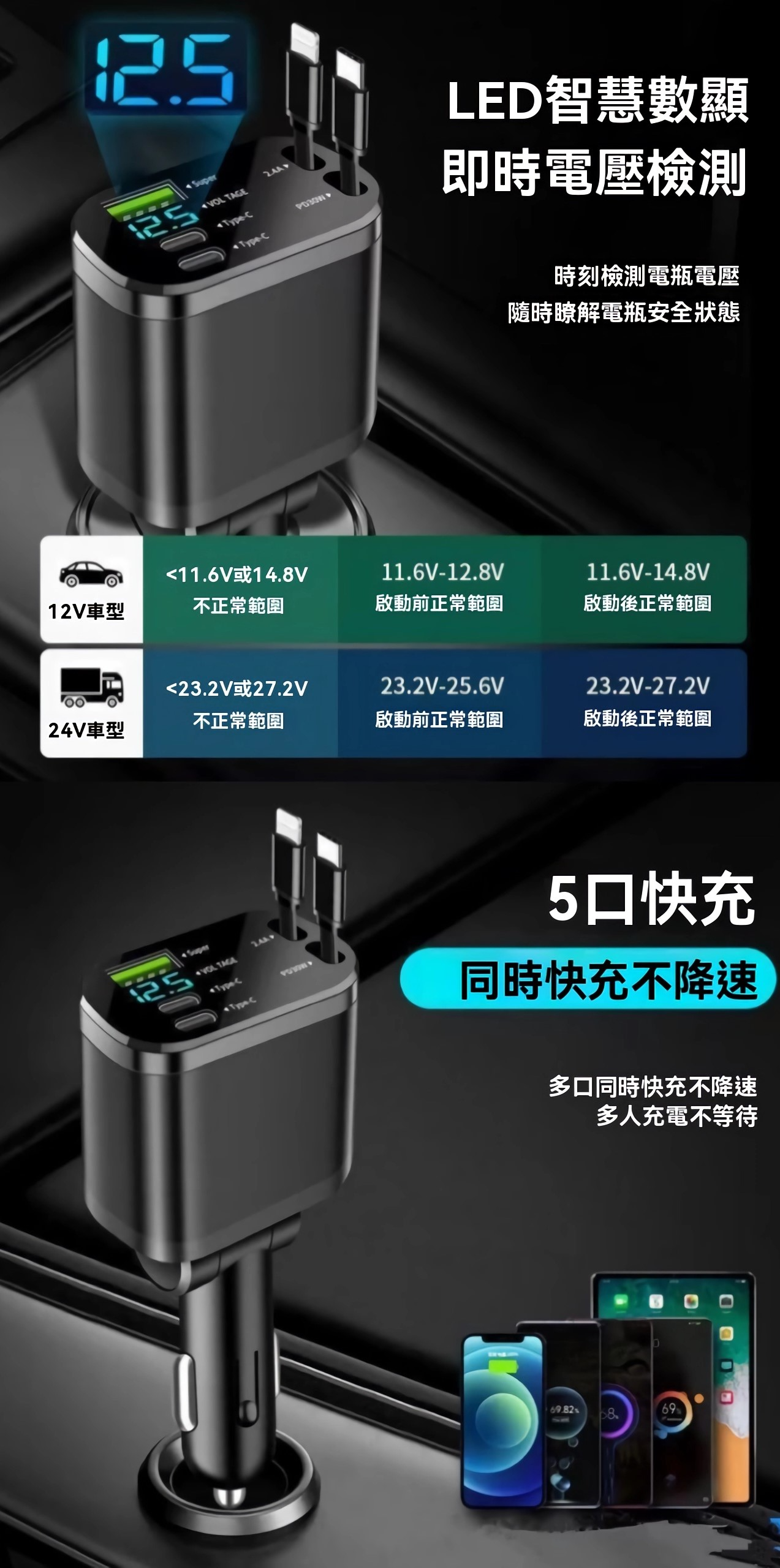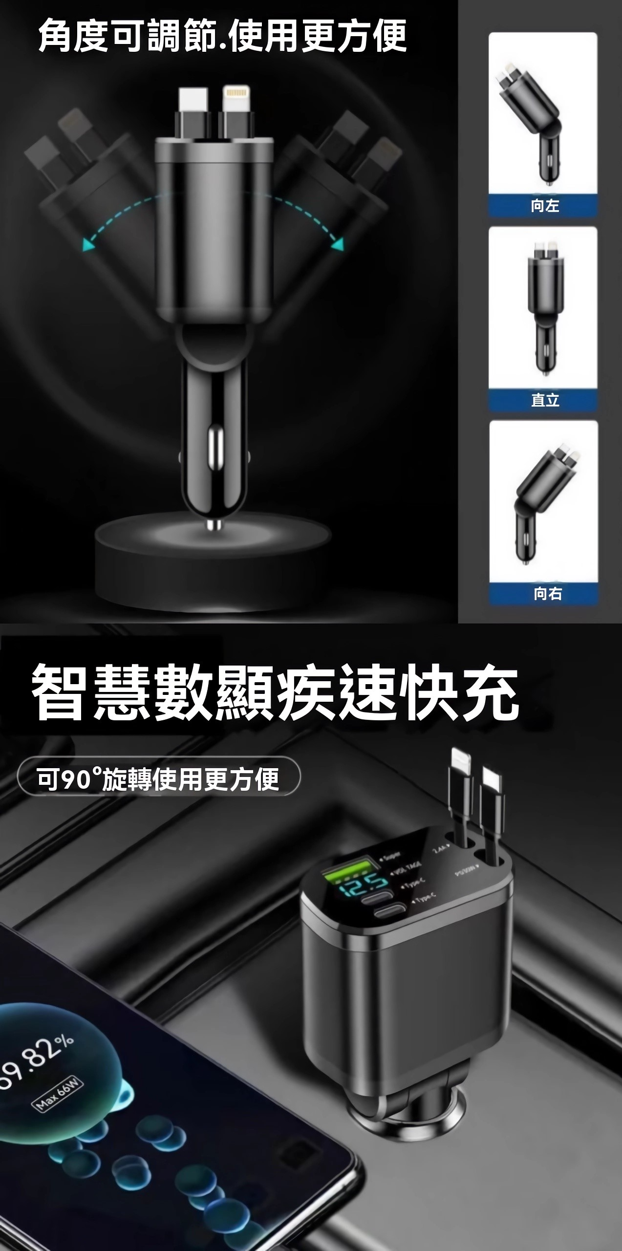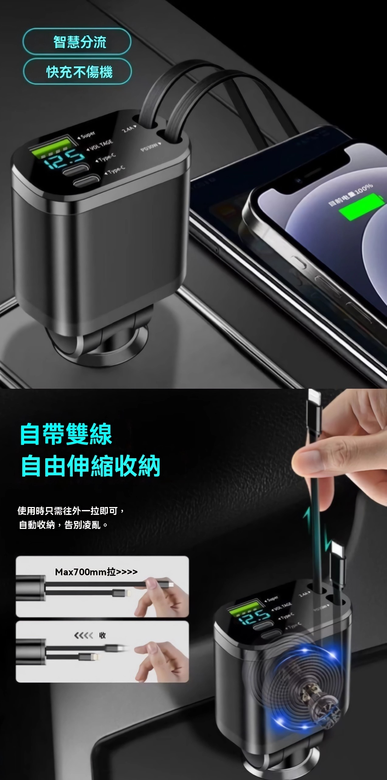 【大亨現貨】自帶線高速車充