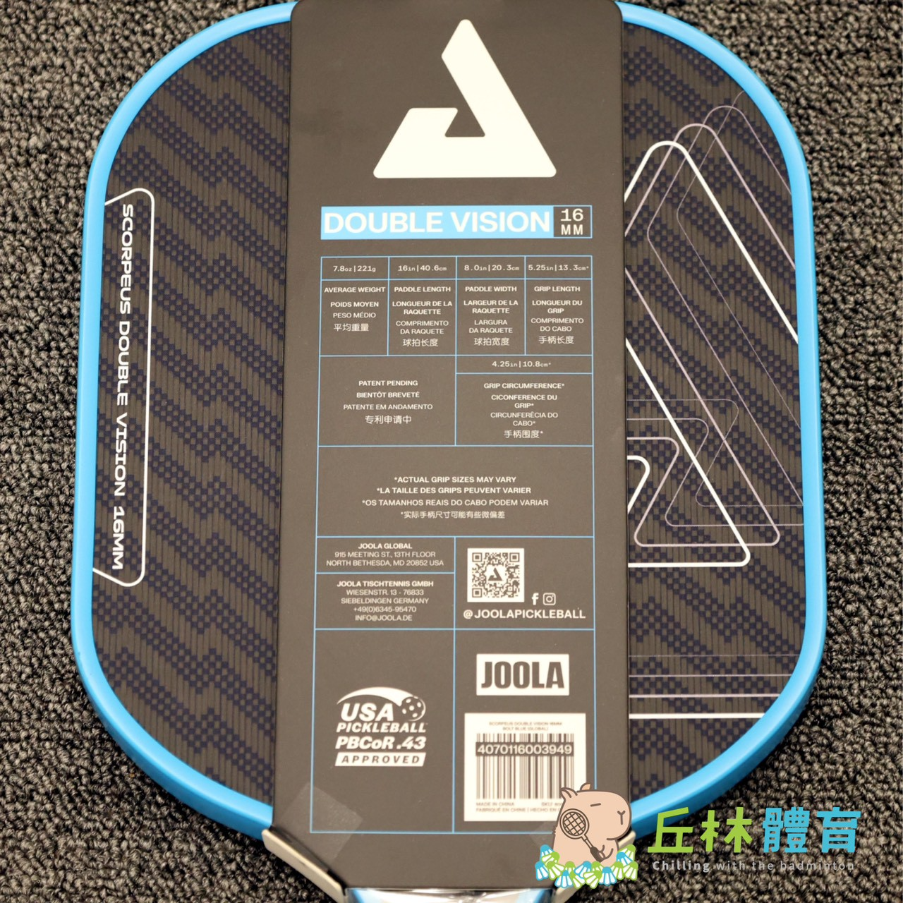 丘林體育Chilling | JOOLA 匹克球 | Scorpeus Double Vision 16mm 匹克球拍 | 台灣公司貨 | 大拍面