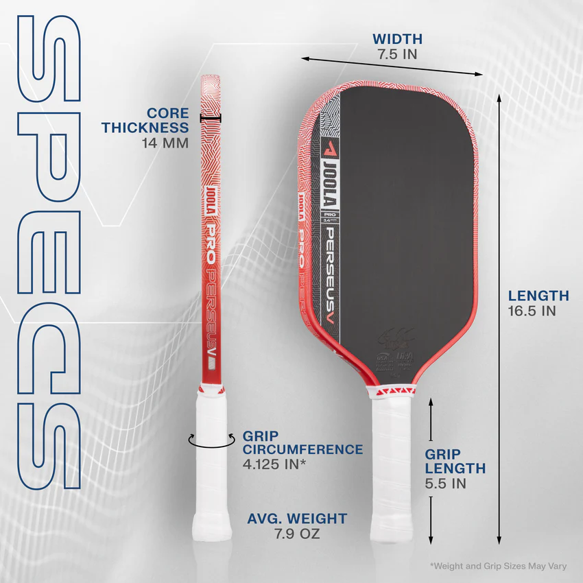 Perseus Pro V 球拍非常適合追求快節奏對攻中穩定性的進攻型球員。這也是本·約翰斯選擇它的原因。他的簽名款 Perseus Pro V 採用亮紅色設計,提供 16 毫米(重 8.1 盎司)和 14 毫米(重 7.9 盎司)兩種拍芯厚度可選。兩種拍芯均採用本·約翰斯偏愛的 4.250 英寸握柄週長。