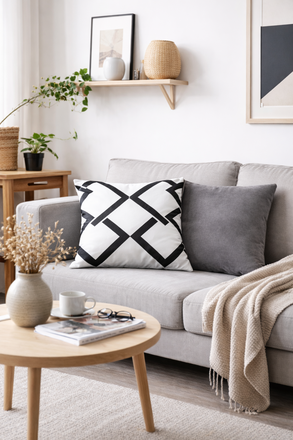 擺在平庸的空間或沙發上,就能為制式的平天花及櫥櫃空間定調,