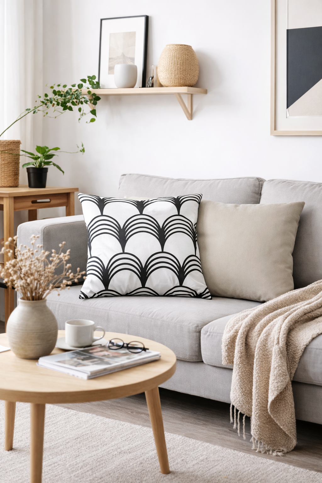 擺在平庸的空間或沙發上,就能為制式的平天花及櫥櫃空間定調,