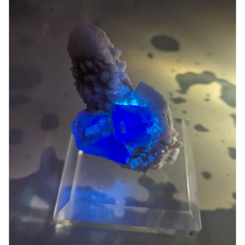 在UV燈照射下,螢石具有明顯螢光反應,展示效果佳。