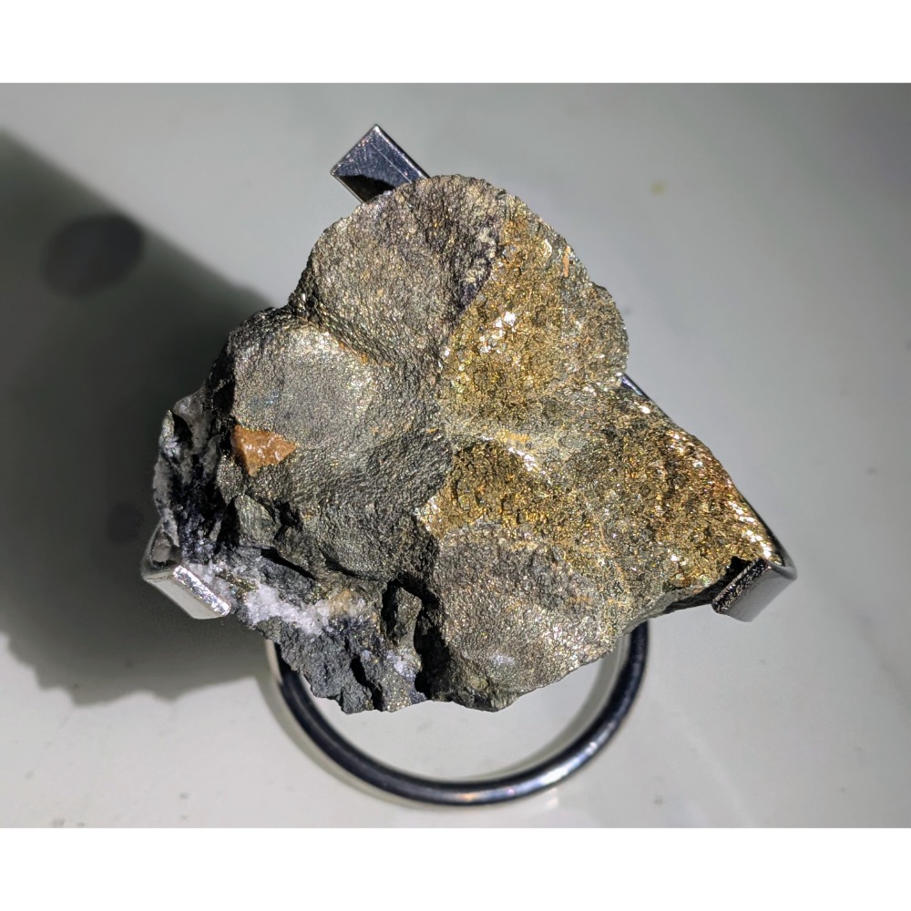 本件為天然黃銅礦與石英共生原礦標本,礦石表面可見細緻金黃色金屬光澤,並伴隨白色石英晶體共生,展現自然形成的礦物紋理與層次,具有觀賞與收藏價值。