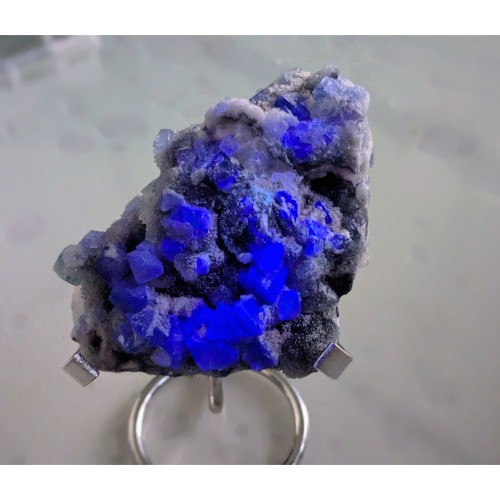 標本可見多顆八面體螢石晶體自然生長於母岩之上,局部覆蓋細小水晶晶簇,呈現砂糖面效果,整體觀賞性佳。天然礦標保留原始生長型態,適合作為收藏或空間擺設。
