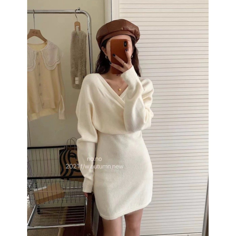檔口白長袖針織包臀裙&灰刷毛帽T