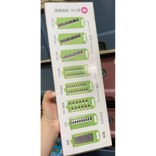 只用過一次 二手 橘之屋 多功能刨蔬果器 附安全護手器 8款刀片, 白色+綠色, 1組, 28.5x12x9.5公分
