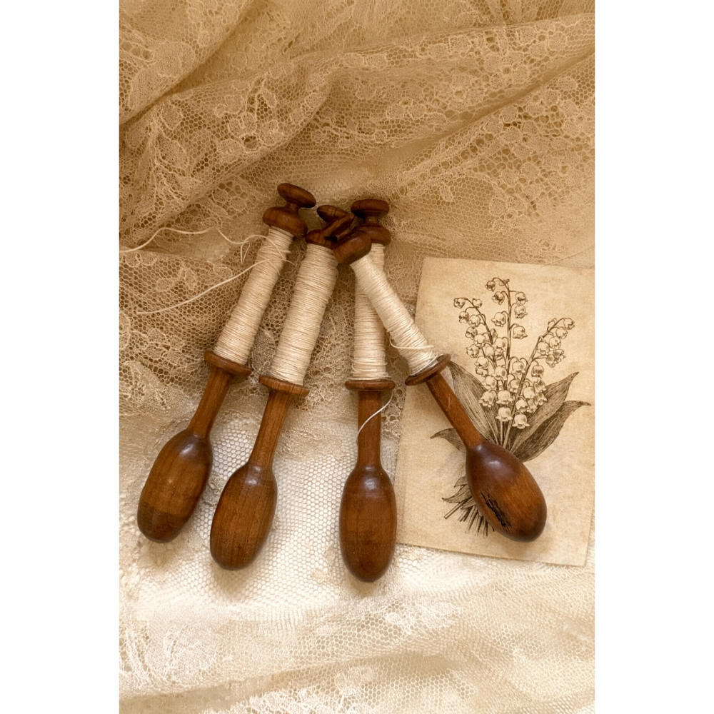 這批歐洲古董棒槌(Lace Bobbins)並非普通舊物,而是我們費心尋得、跨越近百年時光的珍貴工藝遺產。每一支棒槌都因長年累月的操作與撫觸,木質纖維內斂出如絲綢般的自然光澤,這是任何現代仿製品都無法模擬的「時間重量」。