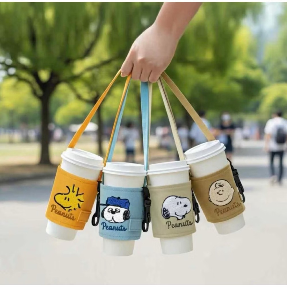 7-11 SNOOPY史努比出遊趣折疊飲料提袋 杯袋 被套 刺繡杯套 史努比Woodstock飲料提袋 胡士托 查理布朗