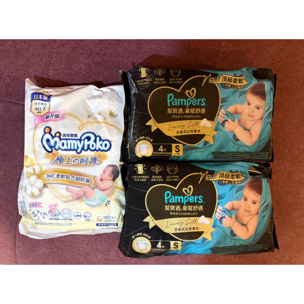 全新幫寶適奢寵S尿布4片x2包+滿意寶寶S尿布3片x1包