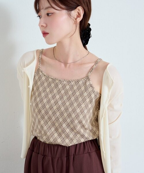 在低調的格紋吊帶背心外疊穿開襟衫或外套,營造秋日氛圍。