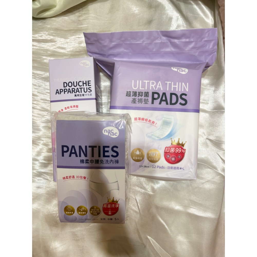 nacnac產褥墊、免洗內褲5入、生理沖洗器(如圖)