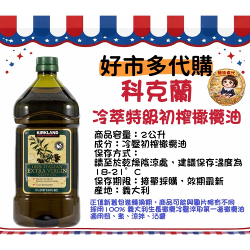 好市多代購/科克蘭義大利冷萃特級初榨橄欖油2公升#1058619