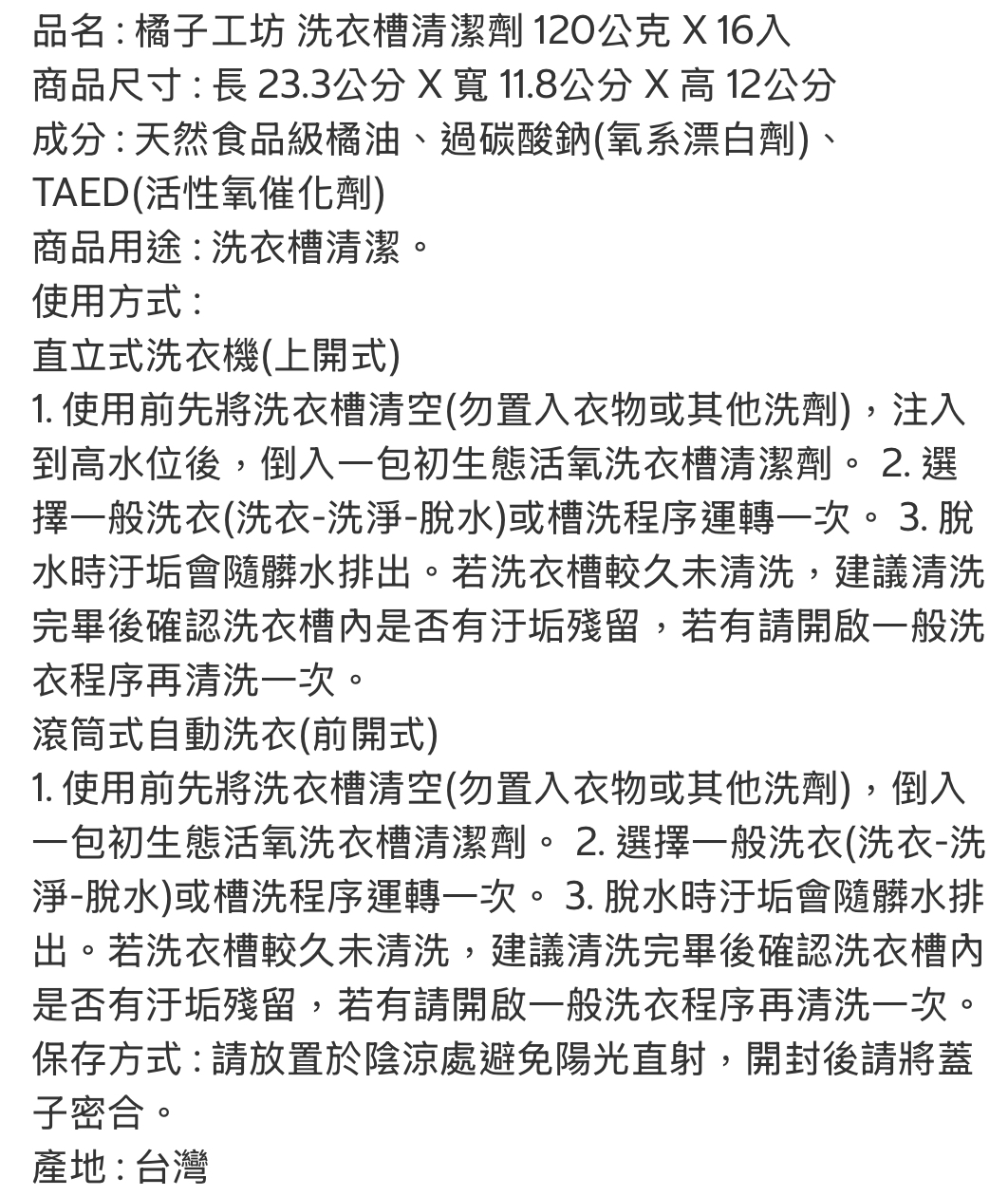 好市多代購/橘子工坊 洗衣槽清潔劑120公克 X16入#131144