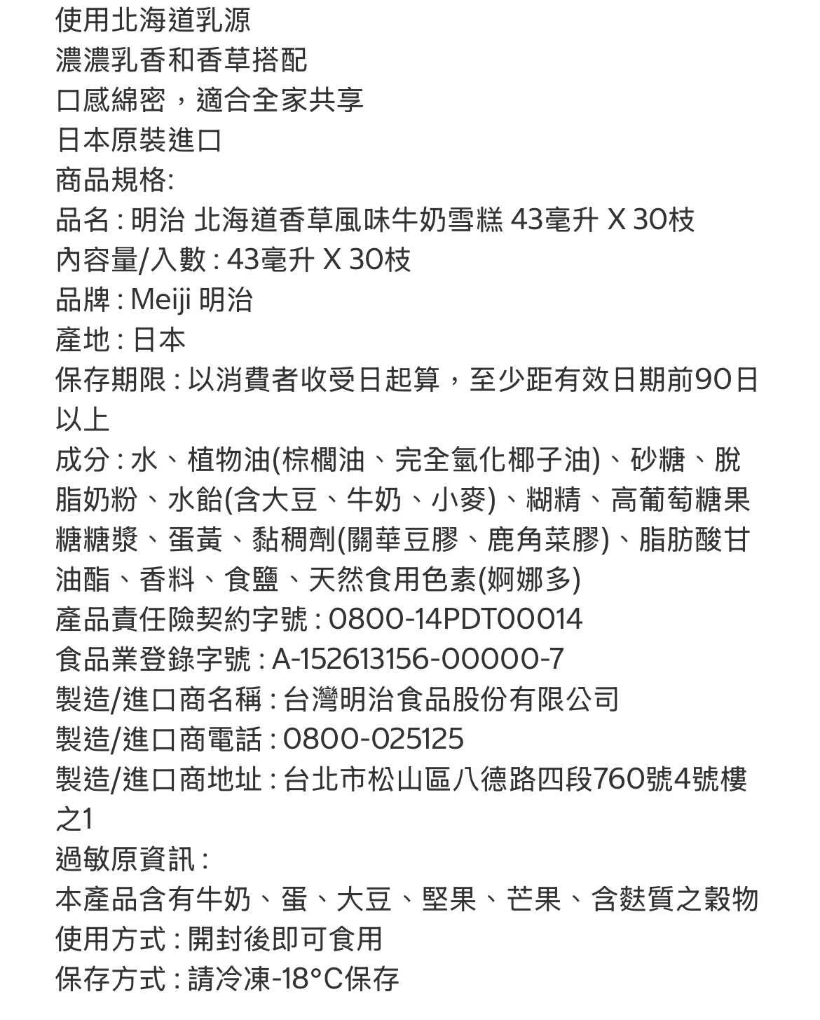 好市多代購/明治 北海道香草風味牛奶雪糕 43毫升X30支#64155