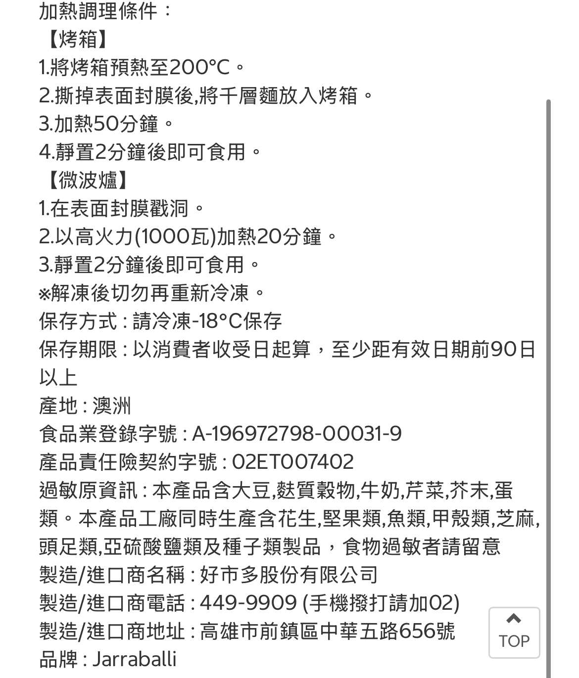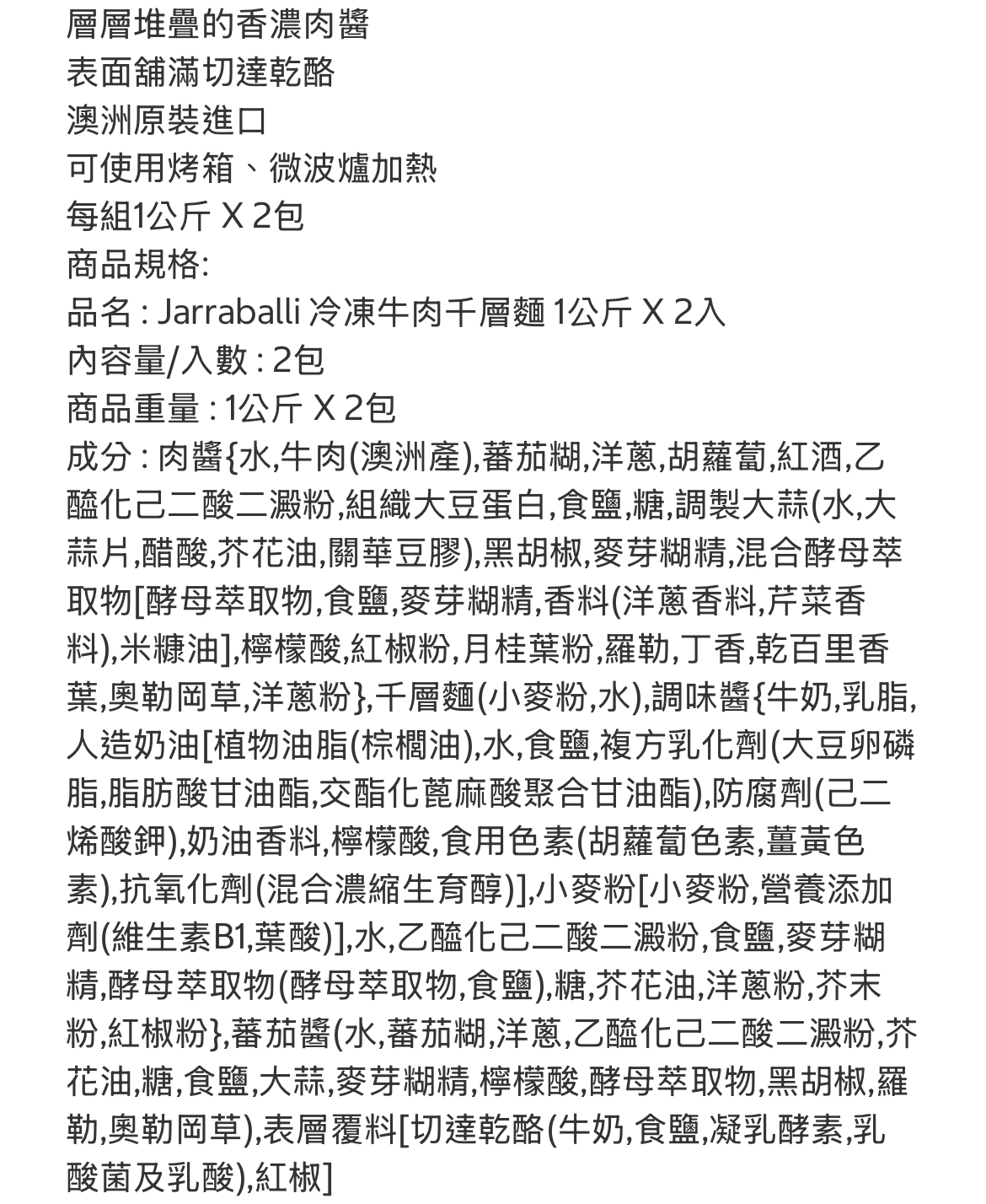 好市多代購/Jarraballi冷凍牛肉千層麵1公斤X2入#1101675