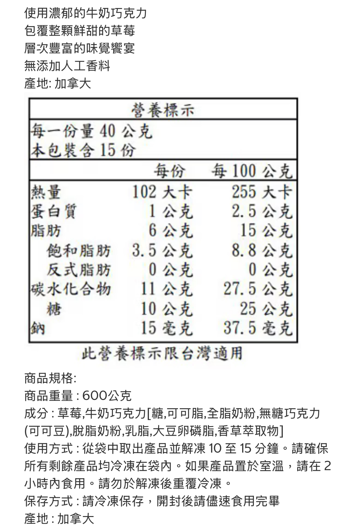 好市多代購/Nature's Touch 冷凍巧克力裏草莓600公克#144005